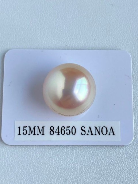 15.5mm gem quality champagne south sea pearl with pink overtone, half drilled, PSL Queen
