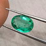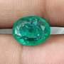 1.24 carats GSI certified Vivid medium green Zambian emerald. Oval cut minor oiled loose gemstone.