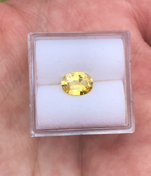 A pretty Yellow Sapphire I purchased from AJS Gems. It is 1.17ct cut in a step cut oval, measuring 7.7mm x 5.7mm, treated with simple heat only (no lattice diffusion) per Ron at AJS. The stone has never been set. My asking price is less than I paid for the sapphire in 2014.