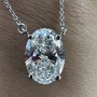 Absolutely gorgeous platinum necklace featuring a 4.93 carat oval brilliant lab-grown diamond, graded F color / VVS2 clarity and IGI certified (inscribed #LG681559024). The stone measures 13.66 x 9.72 x 5.93 mm and catches light beautifully — tons of sparkle.