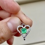 For sale is a stunning Colombian emerald and diamond heart pendant in 14k white gold. The emerald is very clean and very bright an glowy. The diamonds have a great sparkle.