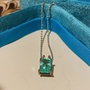 For sale is a colombian emerald pendant i got years ago off of etsy. The emerald is very clean (no surface inclusions) and on the lighter side. The stone measures about 9x6mm. The setting is done in solid sterling silver.