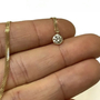 Featuring 0.25 brilliant cut diamond set in a 14K yellow gold bezel. Diamond is J in color and SI1 clarity. Bezel is attached to a small 1.5mm jump. A 1mm yellow gold chain can be added, between 16”-20” upon request and price would increase $60-$90. Shipping is $15 US.