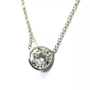 0.50 carat Brilliant Cut diamond bezel necklace. Diamond is G in color and SI3 clarity. Set in stamped 14K white gold, 18” chain. Newly made.