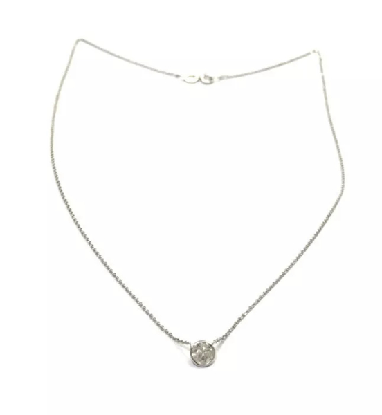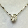 Lovely 0.55 ct brilliant cut diamond bezel set necklace. Diamond is G in color and I2 clarity. Set in 18” stamped white gold chain. Shipping is $10.