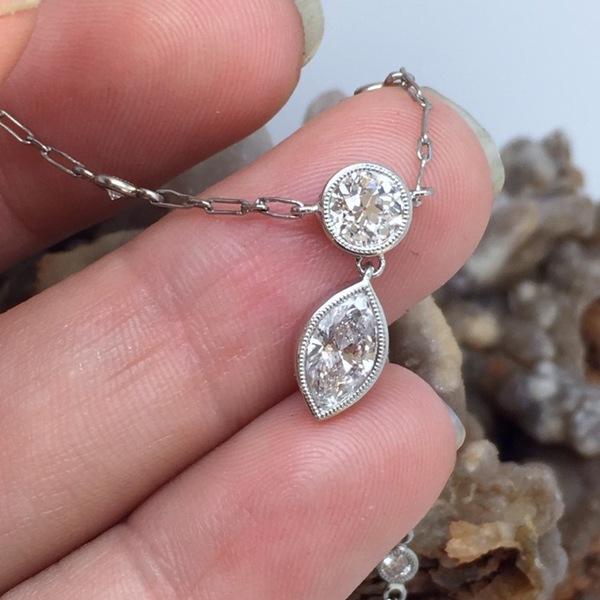 by the yard style link, and 0.65ct H/VS OLD European Cut & 0.79ct GIA F/SI2 (eye clean and very brilliant, no bowtie) lavalier style pendant