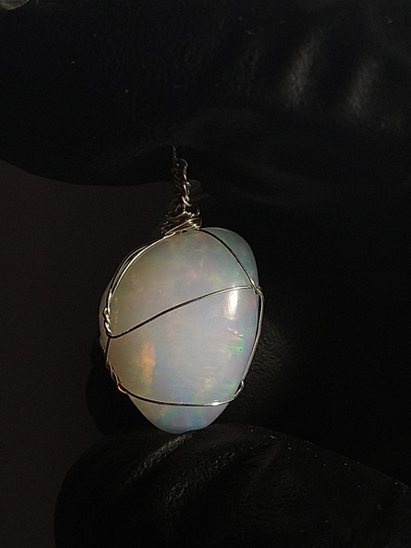 7+ Carat Opal Cabochon Sterling Silver Wire Wrap Pendant