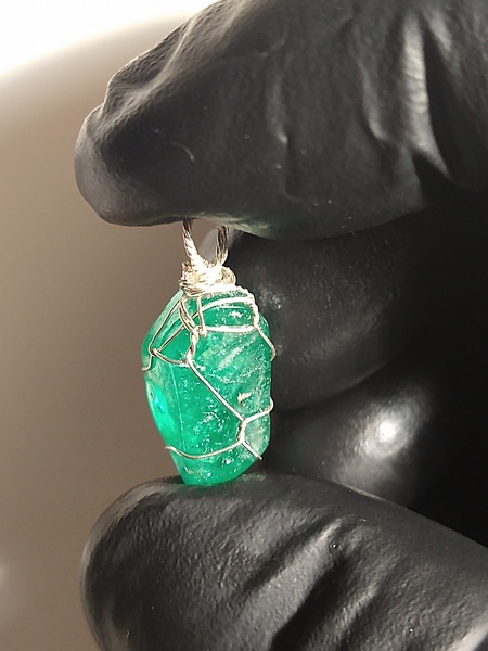 Beautiful natural emerald mined in the swat valley. It shimmers and glows. free shipping. Ten carat Ballpark. Sterling silver wire.