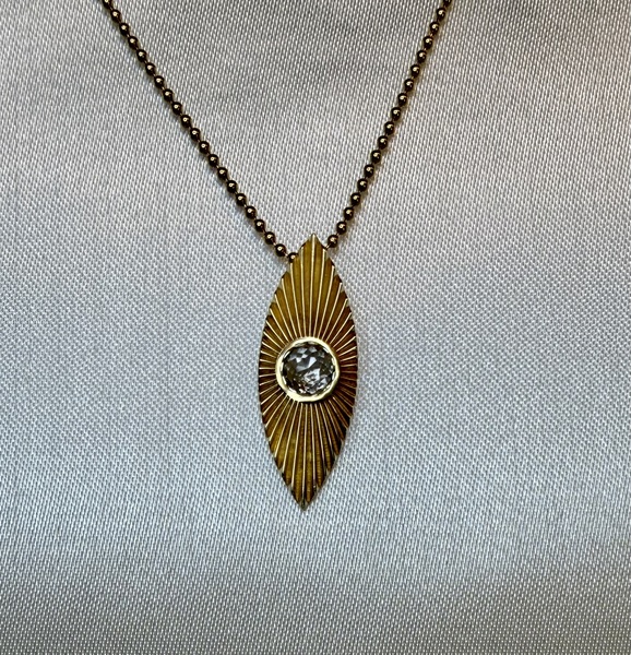 The 18K fluted designs frames a unique double dutch rosecut diamond sourced through Alex Parks. The GIA-graded center stone (Report #2239108810) weighs 0.90 carats and is graded M color, VS2 clarity. Its distinctive dome and elegant faceting create a soft, romantic glow unique to rosecut diamonds. The original GIA certification will accompany the necklace.