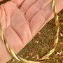 3 strand braided herringbone, 14 kt gold, Made in Italy, 16” length with large, secure lobster clasp! 3.3 mm wide and 6 grams. More videos/photos on instagram here: https://www.instagram.com/reel/DMq2MAPyd4P/?utm_source=ig_web_copy_link&igsh=bGMwNGNxamZmemYy