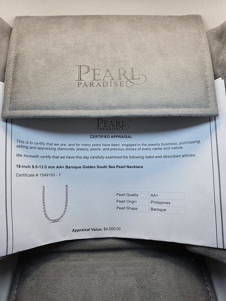 As I’ve gotten older, my tastes have changed, and I’m now cleaning out my jewelry box. I’m selling this 18" long white/cream baroque South Sea pearl necklace, purchased from Pearl Paradise years ago.