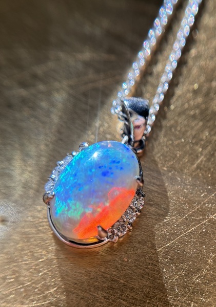 *Sold*Platinum Opal and Diamond Pendant Necklace 18k Chain Vintage Estate