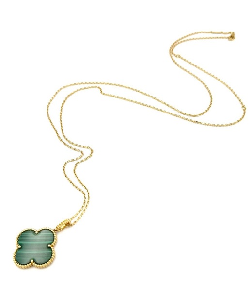 Very beautiful and rare necklace from the “Magic Alhambra” collection in 18K yellow gold consisting of a chain holding a quadrilobed pendant enhanced with malachite.