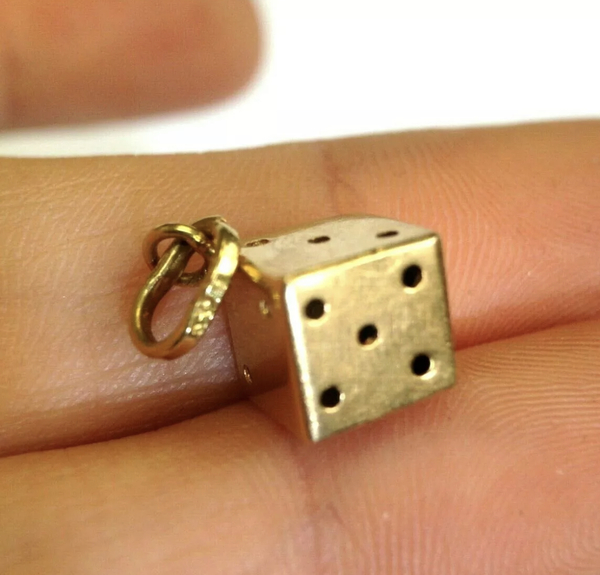 Cute 18K yellow gold dice charm. Marked 750. 8mm x 8mm. Shipping $10 US.
