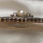Edwardian 18k gold bar brooch with a 5.35mm round pearl center with excellent luster.