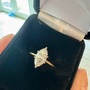 1.$500 Emerald Cut Natural Diamond Halo Ring: I purchased this ring a couple years ago from Dolly on Instagram (xothebijouxbox). Check out her stuff! She finds and creates amazing pieces. While I absolutely love this ring, I never wear it. It deserves to be worn. Size 6. 14 kt white gold. Under .5 ct diamond center (not by much, but I'm unaware of the exact ct weight of the center stone). The diamonds appear to be colorless and inclusion free. I can't see anything with the naked eye or my loupe. It's truly a gorgeous, sparkly piece with a center diamond you get lost in (it's that pretty). All natural diamonds.