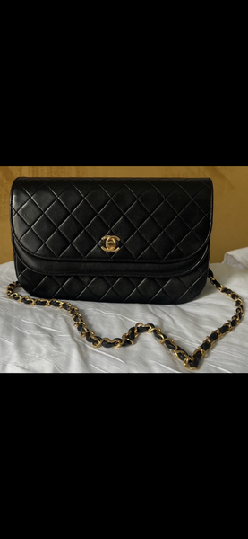 Home » Other » Vintage 1980s Chanel Black Quilted Lambskin Half Moon Double Flap Shoulder Bag
