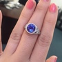 PrimaGemsUSA (where I bought the stone) set it for me. I paid over $1300 for the stone alone, so whoever buys this will get a killer ring for a great price. 4th photo is loose tanzanite I bought from PrecisionGems to compare color. Additional photos or video available upon request (serious inquires only please).