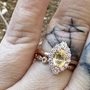 natural yellow sapphire set with lab diamond halo. Ring is 10k rose gold. With plated white gold prongs. Size 7. It’s a gorgeous ring. I just don’t wear it. Open to trades too. Please email vhenke@live.com