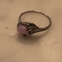 Beautiful vintage pink star sapphire ring with a vibrant and easily visible star, with a tiny diamond, set in a beautiful 10k gold organic leaf-like setting. Fits about a size 7 finger.