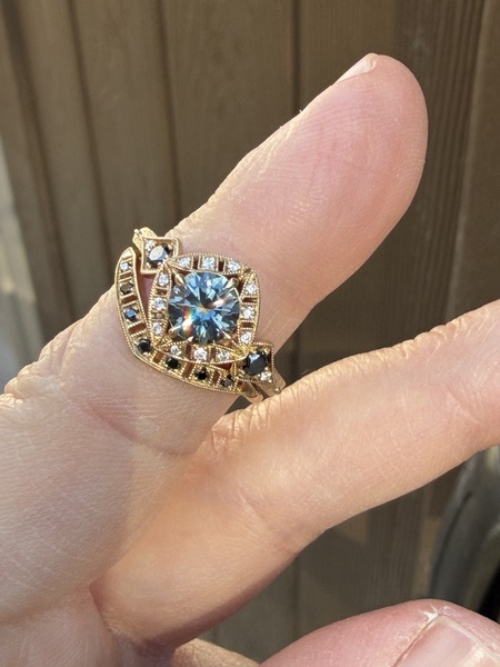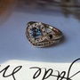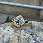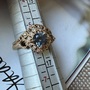 14K Yellow Gold ring set .97 5.8mm Montana Sapphire w/ black & white diamond accents Size 5.5