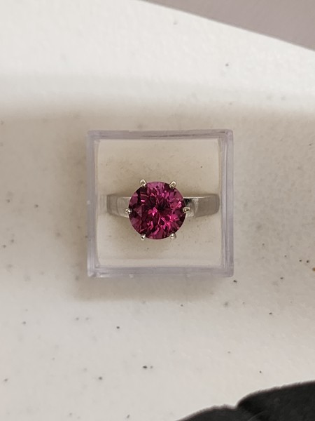 Beautiful Malaya garnet from PrimaGemsUSA set in a 14k wg setting - ring size 6.5. Stone is 9mm and 3.71 cts