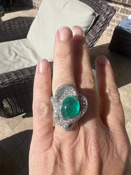 Home » Colored Stone Center » 9.77CT OVAL "COLOMBIAN" EMERALD SURROUNDED BY 7.00CT OF PINK AND WHITE DIAMONDS