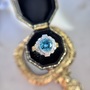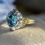 Art Deco Blue Zircon Diamond Ring in 14K Yellow Gold & Platinum by Church & Co.