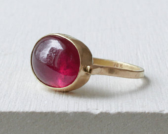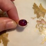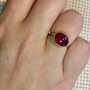 Hi! Up for sale is an absolutely gorgeous ruby engagement ring / RHR set in 18k by artisan maridesignjewelry on Etsy. The ruby is 5.85ct, or 9.5 x 11mm approximately. It doesn't appear to be heat-treated or fracture-filled; I trust Mari's integrity with her stones, and I had it sized with zero difficulty. (Treated/filled stones can often present issues in this regard.) It's a stunningly beautiful color in a high-polish cabachon and is set in a wonderfully-made 18k gold bezel with a slightly hammered band. The ring is a 6.75 and sizable. I was so happy to make it mine, and I hope it can bring others joy, too! I'm asking $300 OBO through PayPal (payment address: donora.ann@gmail.com). All sales final -- please email me at dhillard@uakron.edu if you do not receive a response within 24 hours.