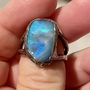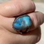 The opal is on fire with bright flashes of turquoise, royal blue, and bright seafoam green. This would make the perfect statement ring to ring in 2026 in with!