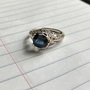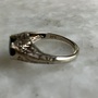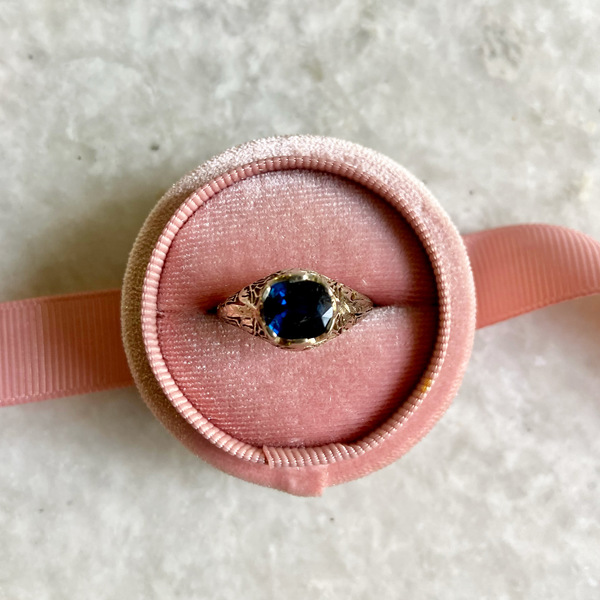 Parting with an absolutely stunning GIA-certified East-West set oval velvety blue sapphire cradled in an art deco vintage perforated/engraved 18k white gold stamped setting. The basket stone setting is 6mm H x 10mm W. Bright polished shank.