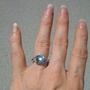 It is NOT sterling silver which so many gem rings are made of right now. This was a $650 ring, yours for only $300! I don't know the tcw of the diamond melee/ halo but they are tiny sparklers and cover all visible finger area. This is a stunning bling ring, and such an original style that you just don't see!