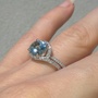 Stunning Aquamarine and diamond halo white gold swirl ring. Amazing finger coverage, this would even make a great engagement ring or promise ring! Or would be an amazing treat to buy for yourself :) Ring is either 14k or 10k because when it was sized, it merged where you see the 10k or 14k symbol so all you see is number "1". The current size is 5.5 but any jeweler can easily resize. So I will assume it's 10k.