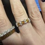 maybe diamonds & citrine? Cannot recall which stones they are. Might be sapphires! So I’m selling just for the gold weight since I cannot guarantee any stone type.
