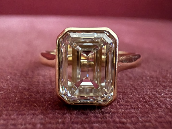 Home » Lab-Created Center » 3.01 Carat Emerald Cut Lab Diamond Solitaire Bezel Set In 14k Yellow Gold (Clean Origin/The Madeline Setting)