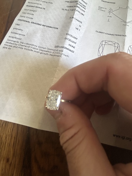 3.2 Carrot Engangment ring- Certified Lab Grown. New Condition