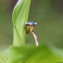 This is a simply beautiful, unique and rare "Blue Amora Moissanite" (more blue-green, actually) from betterthandiamond - as a result, I had to ship this stone to another country and ship it back to me because of the patent issue.