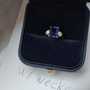Home » Lab-Created Center » 7x9mm Lab Sapphire with Moissanite Side-Stones by AHBogemStudio, 14k Yellow Gold. Ring Size: US 5.
