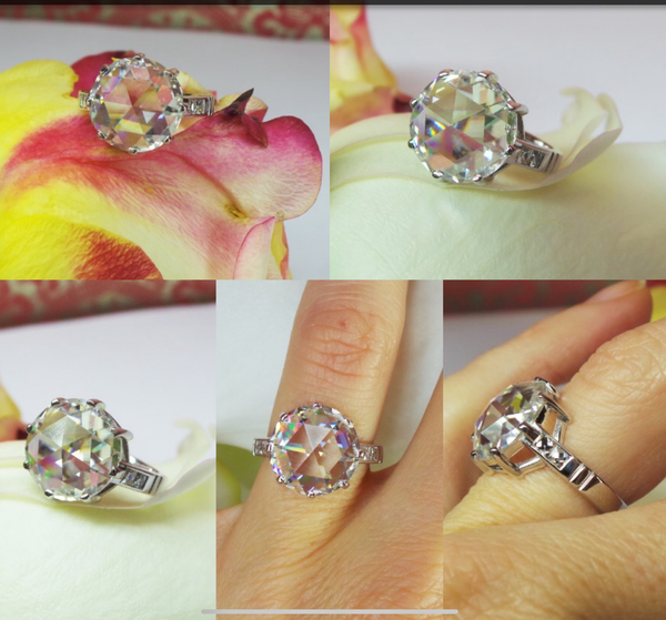 David Klass Rose Cut 14kt White Gold Sz 5 Moissanite Ring