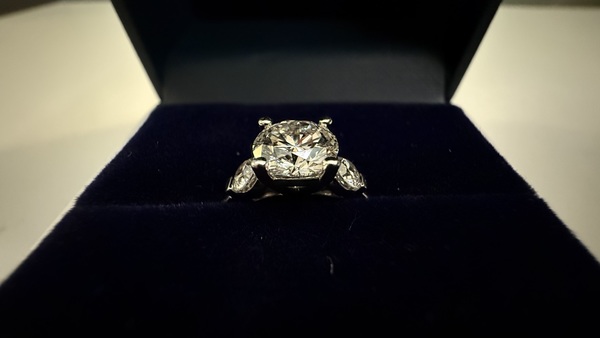 For sale is a brand new / never worn engagement ring purchased from Blue Nile. It’s a classic, elegant petite three-stone design in platinum, paired with a GIA-certified lab-grown round diamond.