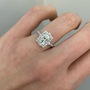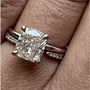 This ring is a Ken & Dana Design crafted piece. Take a look at their website to see their work. The ring was sent to eBay Authentication and has been successfully authenticated. I will include all the paperwork I originally received with the ring as well as the eBay authentication cards. All details are listed under the item specifics. The platinum setting is modern and minimal, but extremely well made and solid. It makes the cushion cut stone the center of attention and the claw prongs elevate the piece. I was able to stack this ring with a ring cuff and wedding band (cuff and band not included). This is an absolutely beautiful engagement ring, but my husband purchased a new ring for me for our anniversary.