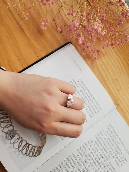 Its 7x7 princess and a 10.5x7 Crush Ice oval set in 925 silver plated with 1 micron 18k Rose gold, 2.4x12 moissanite in the pave setting. US size 5
