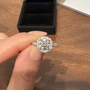 This is a gorgeous ring that has about 1.25 carats of old cut diamonds. I think I’m actually being conservative on the carrot weight. It is set in a heavy platinum and sturdy setting of 10 g! It’s size 7.