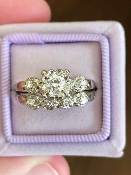 14k white gold diamond wedding set, vintage reproduction style. Size 9, sizable.