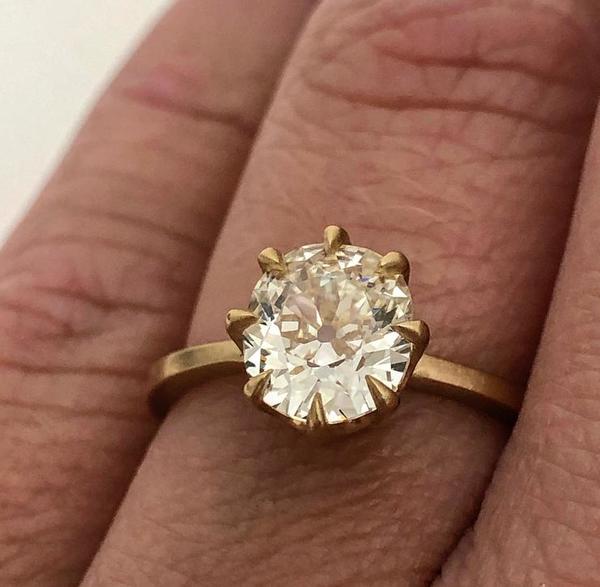 Antique Cushion Diamond Solitaire set in a bespoke 18k Yellow Gold setting. GIA and DPL certified. 1.28 ct GIA graded it O-P color VS2 clarity. DPL (German cert) called it an old mine oval and graded it P color vS2 clarity. It is a gorgeous chameleon color that sometimes appears white and other times a very pale antique lace yellow, depending on the lighting. The diamond has a large face up. At 7.26x6.51 it faces up more like a 1.8 ct so you get a larger look for the price. It is set in a custom designed 18k gold solitaire setting with a gorgeous matte finish. I had the ring custom designed with inspiration from designer Victor Barbone. It is size 5.25 but can easily be sized. The matte finish can also easily be turned to high polish by any jeweler. Please message for images of certificates (GIA and DPL) and videos. My photos do not do this ring justice. It has gorgeous little spiky petal facets that I'm having trouble capturing in photos. Its amazing! Retail for this ring is around $6875. I'm offering wayyy below my cost to help fund a larger purchase. I have more photos and videos on IG: vintagegemseeker. I am a private seller selling to fund a larger purchase so I am unable to offer returns. Please ask for a shipping quote. Price is for PayPal F&F. I am happy to honor G&S (add 3% fee).