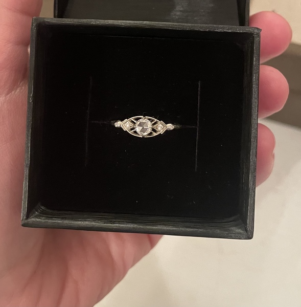 Home » Natural Diamond Center » Dainty filigree ring with 4mm rose cut diamond in 14k unplated white gold (DMDMetal Isadora)