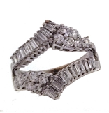 made ring features 23 straight baguette cut diamonds they measure 3.25x1.5-1.25mm and weighing approximately 0.04cts each.