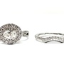 This 2 carat total weight engagement ring set is made in 14k white gold. The center stone is an oval diamond set east to west surrounded by a double halo. The center stone color is H and the clarity is SI1. The matching band has diamonds that wrap half way around and is curved to fit, it sits right up to the engagement ring like a puzzle piece. This set is currently a size 6 3/4. It is located at Franklin Fine Jewelry in the heart of downtown Franklin, Tennessee. Appraisal, complimentary shipping, and free sizing included with your purchase. Contact Maira at mlimajewelry@gmail.com with any questions. Follow me on Instagram @mlimajewelry to see other available styles and custom designs.
