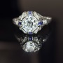 GIA Old European Cut Diamond Sapphire Engagement Ring