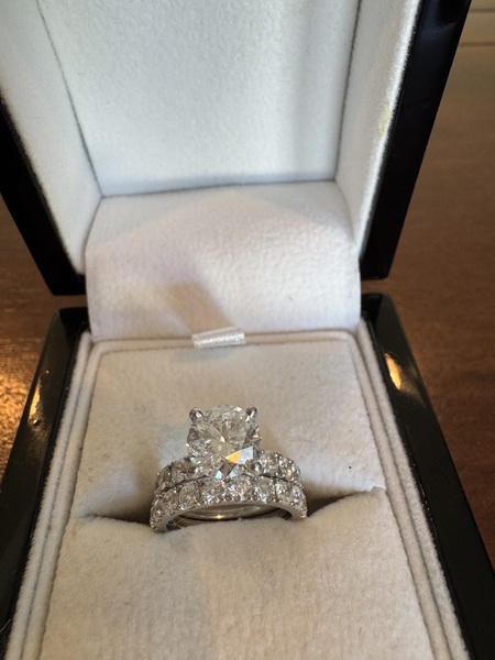 Ladies diamond engagement ring by Designer Barons, handcrafted in platinum. Engagement ring and Wedding band included.